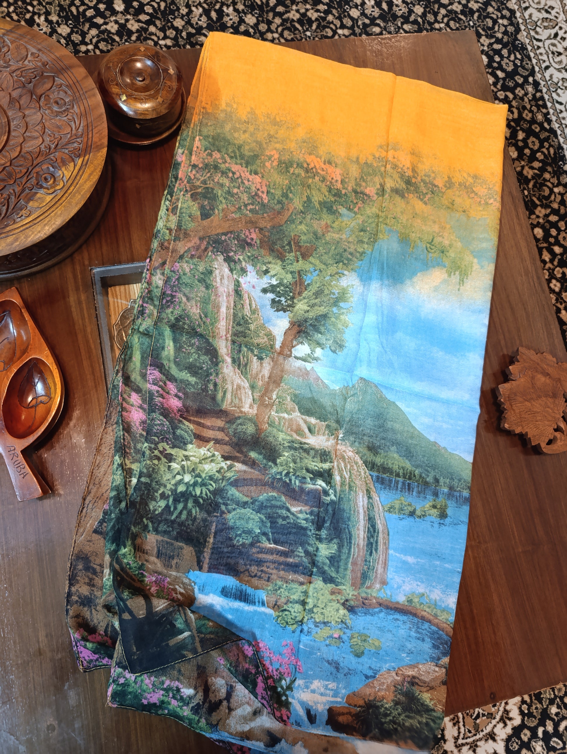 Embrace the breezy elegance with stoles adorned in serene scenic prints—where nature meets fashion.
