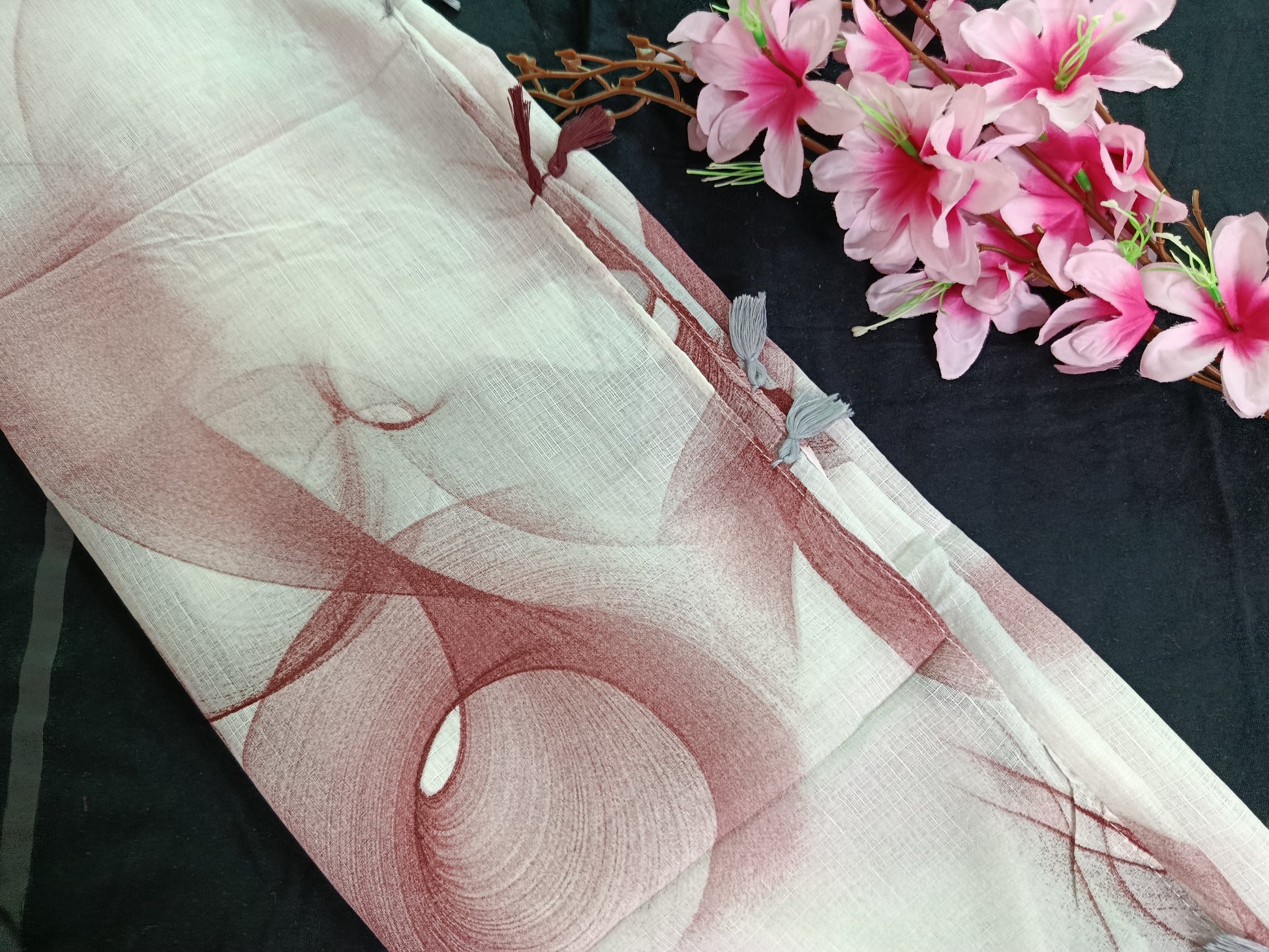 Spiral Pattern Printed Stole with Tassels (Off-white, Maroon)